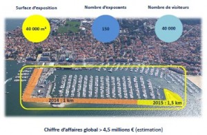 150 exposants prendront place le long des 2,5 kms disponibles. La zone de population ciblée s’étend de la Charente-Maritime aux Pyrénées Atlantiques et 40.000 visiteurs sont attendus. Les organisateurs visent un chiffre d’affaires de 4,5 M €. Le salon nautique d’Arcachon, sûr de son succès, vise haut …