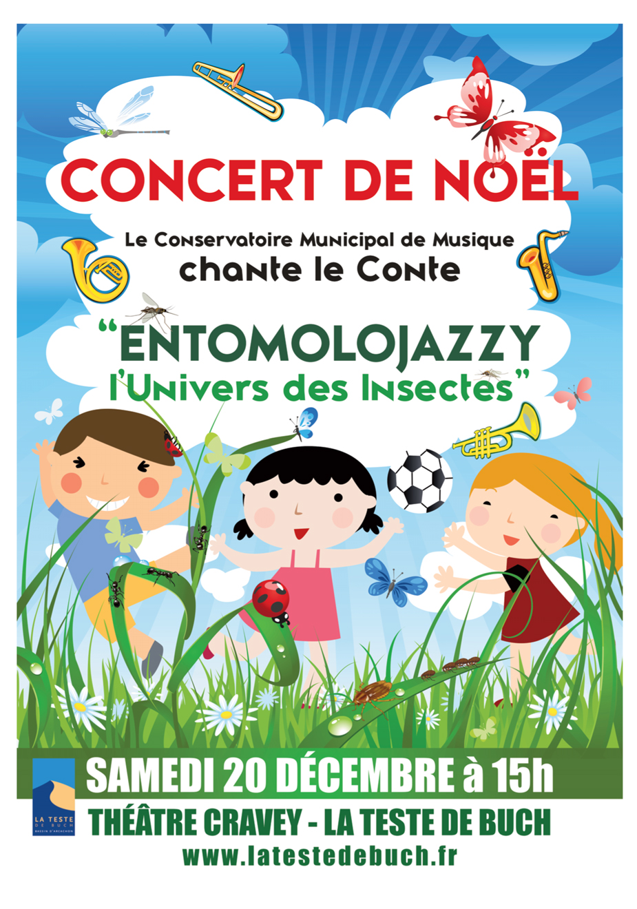 Concert conservatoire de musique : Le conte Entomolojazzy, l’Univers des insectes est chanté par le conservatoire municipal de musique. Nos bambins sont merveilleux … IB pratic : A 15h, à la salle Pierre Cravey, Rue Gilbert Sore.