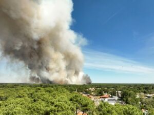 Car un incendie de plus est en cours depuis hier dimanche 18 septembre près de la D106 et de la D3 au nord-ouest de la commune d’Arès. 120 hectares ont brûlé et 310 personnes ont été évacuées à titre préventif dont le camping La Canadienne .