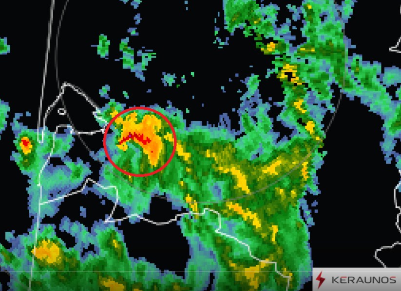 En fin de matinée, elle a touché le sol vers 12 h 05, portée par un orage compact mais fortement rotatif. Les images radar montrent un mésocyclone bien structuré, signe d’une dynamique interne capable de produire une tornade malgré une instabilité modérée. Le cisaillement marqué du vent en altitude a favorisé l’étirement de la rotation jusqu’au sol, déclenchant le phénomène.