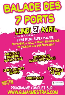 La Balade des 7 Ports : Voilà une idée qu’elle est bonne ! Parcourir les 7 ports de Gujan en famille ou entre amis, en découvrant des animations gratuites … C’est comme un avant-goût de la grande manifestation « Les Bicyclettes bleues » dont on reparlera ici bientot. Cette année encore, la « Balade des 7 ports » est à vivre à vélo, en pinasse, à poney, en gyropode, en trotinette électrique, en kite-surf, buggy, paddle board ou encore … sur des échasses. Le long du parcours le chaland profite des ateliers créatifs, du spectacle de rue, du street golf, ou d’un espace lecture animé par la médiathèque. On peut récupérer son pass’ports et un vélo sur l’un des trois points d’information (Plage de La Hume, Port de Larros (Esplanade des oestréiculteurs) et Port de La Barbotière (parking Comité Régional Conchiliculture) le jour même. Ne pas rater le final de la journée : A 16h00 Plage de La Hume avec Mise en vol collective de Cerfs-volants. 17h00 Spectacle équestre avec joutes, escrime, voltige et chevalerie. 17h45 : Goûter de clôture. IB Pratic : Gratuit. RDV dès 10h sur l’un des trois points informations. Des navettes bus gratuites de 10h à 18h30. Points restauration rapide. Animations gratuites. Renseignements O.T. 05 56 66 12 65 ou Maison de l’Huître 05 56 66 23 7. Attention : 1 De 13h30 à 17h fermeture à la circulation du Boulevard Pierre Dignac entre le Port de Larros et le Port de la Hume. Plus de détails sur le programme et plan des animations, ici.