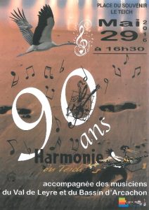 A l’occasion de son 90ème anniversaire, l’Harmonie du Teich invite les harmonies du Bassin d’Arcachon et du Val de L’Eyre pour un concert en plein air exceptionnel.