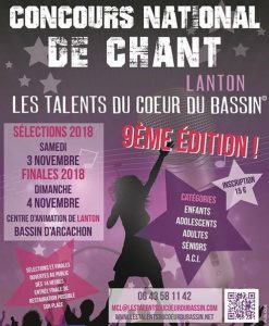 IB Pratic : Sélections ouvertes au public gratuitement samedi 3 novembre. Accès du public aux finales dimanche 4 novembre 3 €/personne (au profit de l’AFMTéléthon). Contact au 06 43 58 11 42 ou à mcl@lestalentsducoeurdubassin.com ou sur lestalentsducoeurdubassin