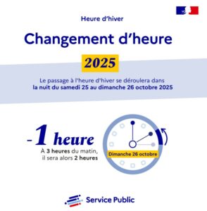Donc, en attendant, dans la nuit de samedi 25 à dimanche 26 octobre, nous passerons à l’heure d’hiver. À 3h du matin, il sera 2h. Soyons positifs : vous allez pouvoir dormir (ou faire ce que vous voulez…) une heure de plus !
