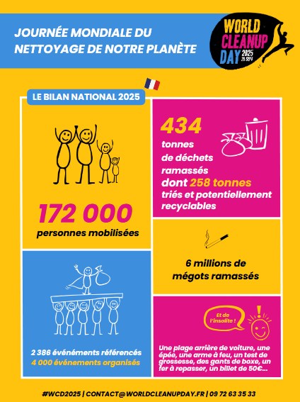 Au total, 434 tonnes de déchets ont été ramassées, parmi lesquelles 258 tonnes triées et potentiellement recyclables. Les nettoyeurs d’un jour ont également collecté 6 millions de mégots, soulignant l’ampleur de cette pollution du quotidien.