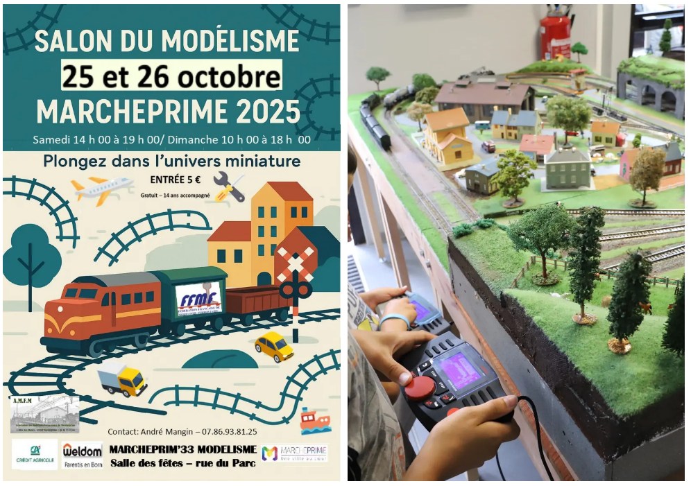 Salon du modélisme multi-disciplines avec artisans et bourse organisé par l’Association des modélistes ferroviaires de Marcheprime. On pourra s’attarder devant différents réseaux de train venant de clubs du Sud-Ouest et autres individuels. Des dioramas statiques (dispositif de présentation par mise en scène) de voitures, camions, civils ou militaires montrent la minutie et le réalisme d’un travail délicat ; Vous pourrez aussi visiter une cabine d’avion.