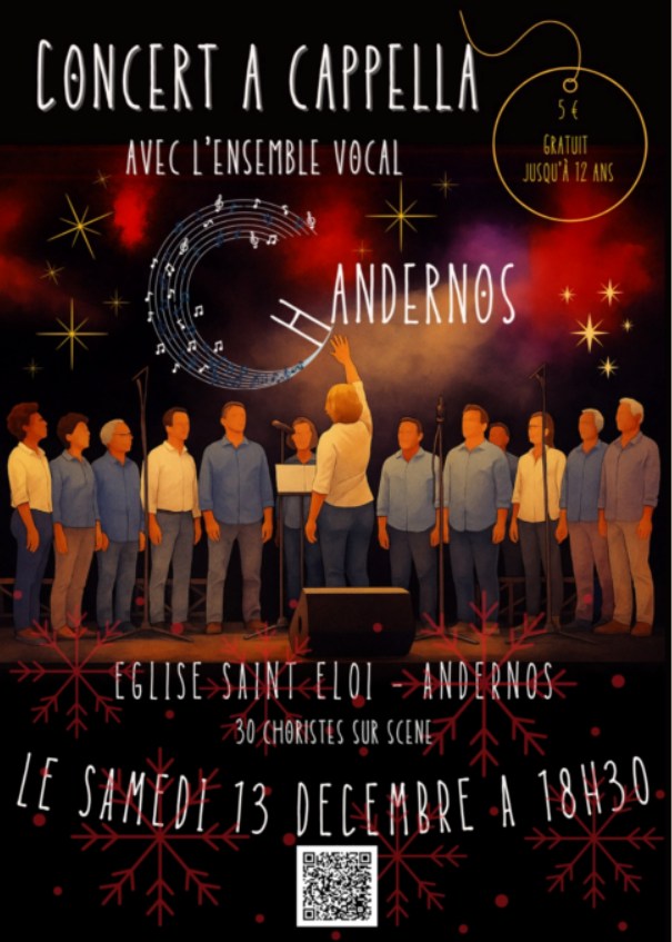 IB Pratic : Samedi 13/12 à 18h30, église St Eloi.Billets 5€ au profit de l’association ChAndernos, qui œuvre depuis sa création à développer la pratique chorale sur le territoire . Billetterie ici (places limitées). Prévoir un coussin, si vous aimez le confort, les bancs en bois sont peu confortables…