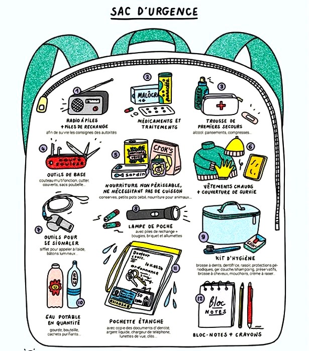 Prévoir un sac d’urgence toujours prêt pour évacuation…