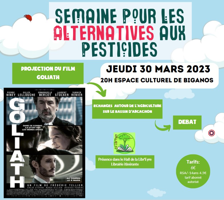 Cette soirée s’inscrit dans le cadre de la semaine des alternatives aux pesticides. Une sélection de livre sera aussi proposé par la librairie itinérante: La Libr’Eyre.