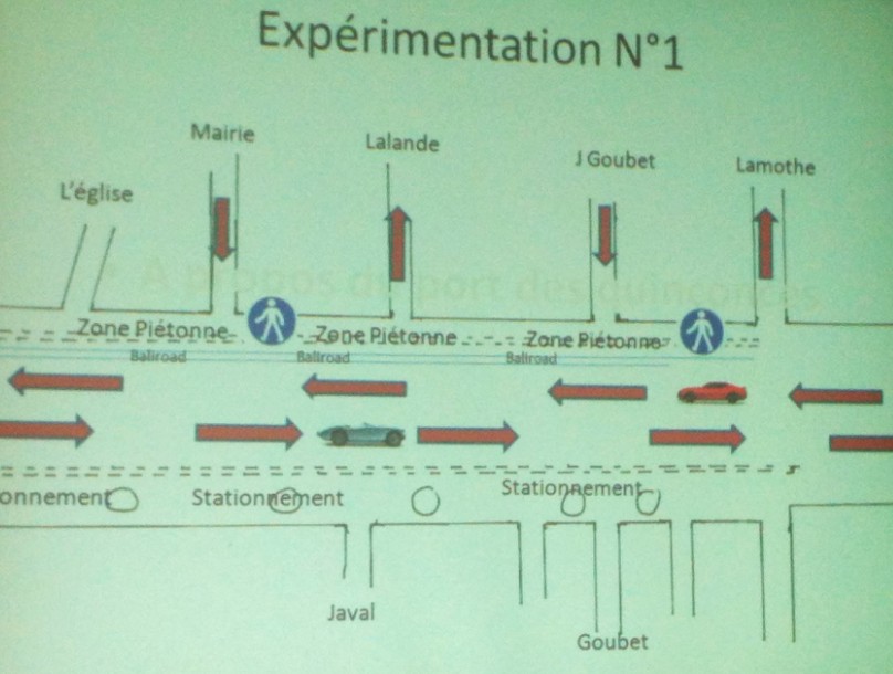 Troisième étape : Après un bilan de ces deux expérimentations et une nouvelle réunion proposée vers octobre avec les riverains (mais pas exclusivement), mise en place du nouveau système de circulation avec signalétique et sécurisation du quartier pour début 2015.