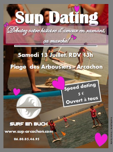 On connait le « Speed dating », concept stressant visant à se présenter à un(e) parfait(e) inconnu(e) en moins de 5 mn. L’équipe de l’école de « Surf en Buch » renouvelle le genre en proposant la même chose … en ramant sur une planche. De quoi déclencher de gros fou-rires, et aider les timides à briser la glace, ou allumer le feu. Si vous avez formé un couple à l’issu de ce « Sup Dating« , Info Bassin est pret à raconter votre histoire ! IB Pratique : RDV à 13h00, plage des Arbousiers à Arcachon. Rens : 0680054696. Vidéo de présentation du club Surf En Buch