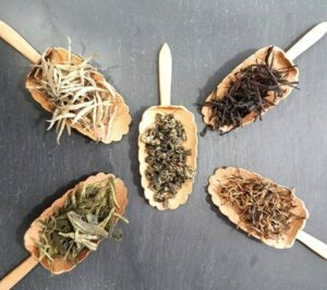 –Thé Wulong (Oolong) : Ce thé semi-fermenté aide à réduire le cholestérol et améliore la digestion, combinant les avantages des thés verts et noirs.