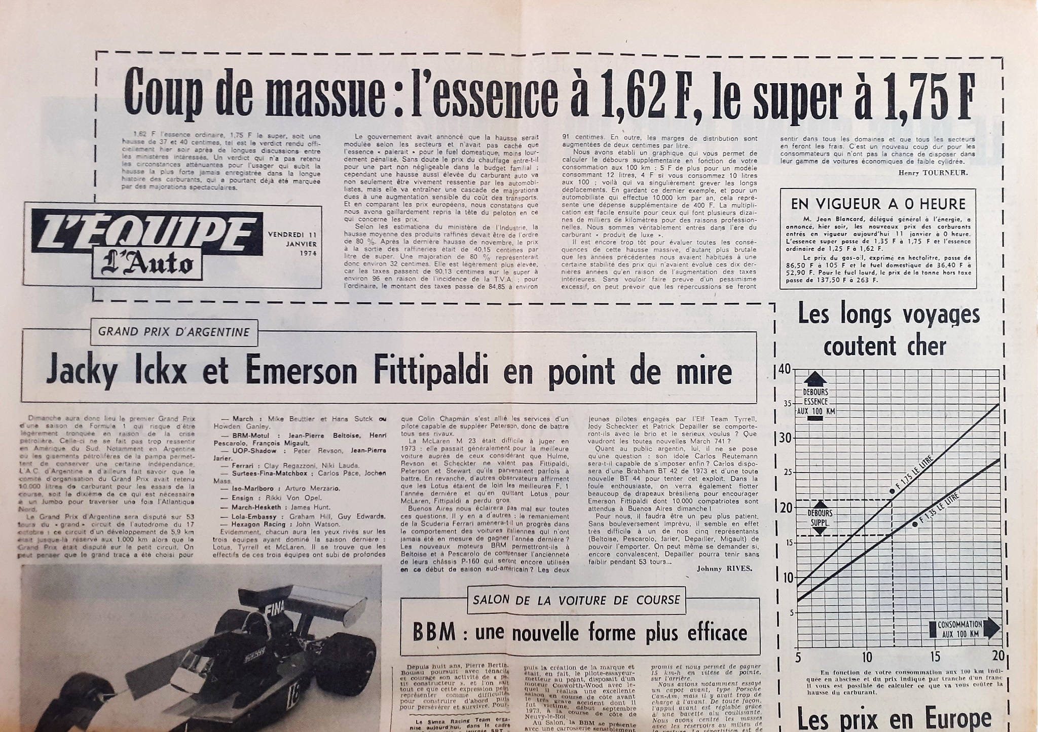 En 1973, le prix du super carburant était environ de 1,20 f le litre. Un prix qui n’avait pas beaucoup augmenté depuis le début des années 60 suite à la fermeture du canal de Suez fin 1956.